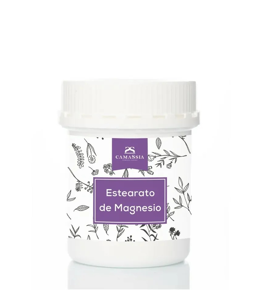 Estearato de magnesio vegetal se mezcla con polvos de maquillaje para que estos se adhieran mejor a la piel.