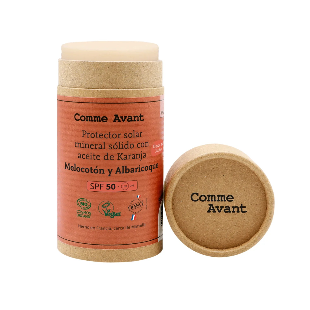 INCI: Astrocaryum Murumuru Seed Butter, Zinc Oxide [nano], Euphorbia Cerifera Cera (Wax),Pongamia Glabra Seed Oil, Caprylic/Capric Triglyceride, Oryzanol, Polyhydroxystearic Acid y, para las versiones perfumadas, además: Perfume y alérgenos presentes naturalmente en el perfume. (ver la lista INCI completa al final de la página)