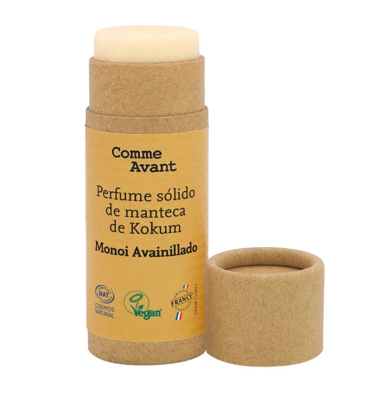 Ingredientes: manteca de kokum, fragancia de origen natural de monoï vainilla, cera de candelilla, alérgenos presentes en la fragancia.