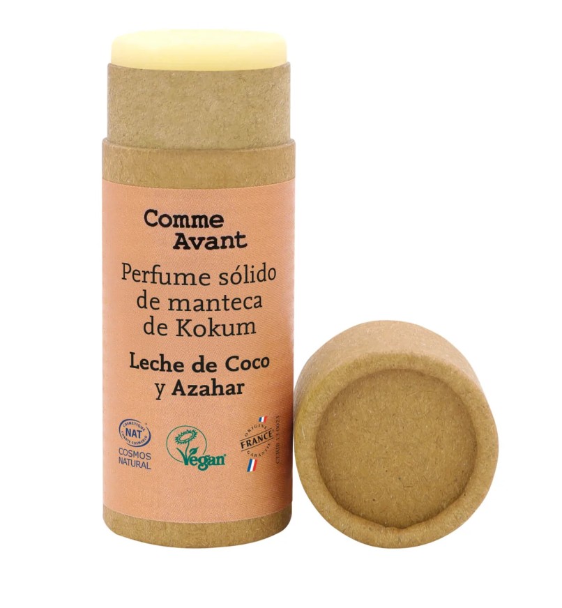 Ingredientes: Manteca de kokum, cera de candelilla, fragancia de origen natural de leche de coco y azahar, alérgenos presentes en la fragancia.