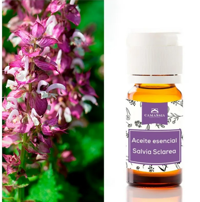 Linalol, uno de los componentes principales de la salvia sclarea y es conocido por sus propiedades calmantes y su aroma suave. Linalil acetato, éster que contribuye al aroma floral y que tiene propiedades relajantes. Geraniol aporta propiedades relajantes y un aroma floral. Esclareaol, terpenoide que puede influir en las propiedades relajantes y equilibrantes del aceite. Alfa-terpineol contribuye a las propiedades calmantes del aceite esencial. Acetato de bornilo este compuesto puede ayudar a regular los desequilibrios hormonales en el cuerpo.
