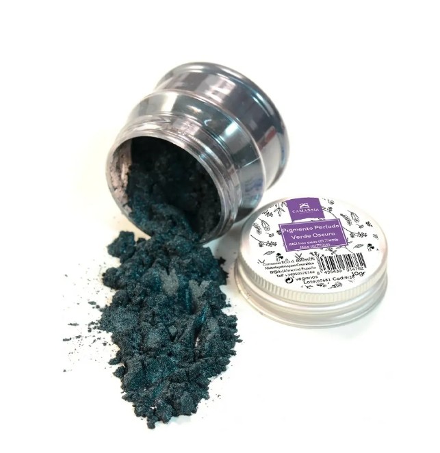 Con esta mica verde oscuro podemos elaborar barras de labios, lipgloss, lapices de ojos, sombras de ojos o colorear y decorar jabones y otros cosméticos.
